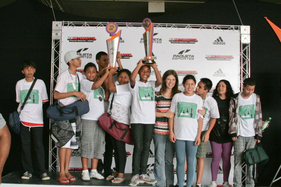 Participamos no dia 20/10 da Copa Paquetá de Xadrez, no Colégio Farroupilha- Porto Alegre-RS Brasil. Nossa delegação foi composta por jogadores das categorias mirim e infantil, nos naipes masculino e feminino. A competição oferecia medalhas para os quatro primeiros colocados por categoria e troféu geral por escolas também até quarto lugar, para a maior soma de pontos entre os participantes em cada uma destas categorias, inclusive do juvenil, onde não tivemos representantes. Ao todo levamos 11 enxadrístas. Na categoria Mirim feminino- Natasha Prates e Naiara de Almeida, no masculino, Bruno Silva, Bruno Carvalho e Maicon Santos. No Infantil, Dyeniffer Soares, Larissa Souza, Amanda Chaves, Yuri Miranda, Christian Abreu e Guilherme Declerque. Obtiivemos ótimos resultados e conseguimos conquistar o troféu geral na categoria infantil e o segundo lugar na categoria mirim, perdendo apenas para a outra escola na quantidade de competidores! Abaixo apresentaremos as fotos do evento!